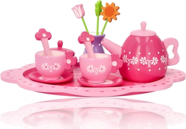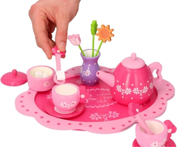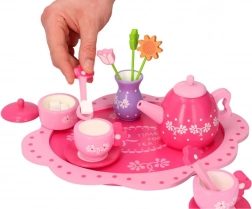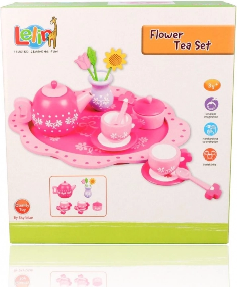 Tato půvabná dřevěná čajová sada v jemných růžových tónech a s květinovými detaily je ideální pro dětské čajové dýchánky. Díky odolnému dřevu dobře snáší každodenní hraní a zároveň rozvíjí důležité dovednosti.