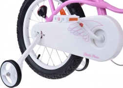 Stylové a bezpečné dětské kolo 14" ROYALBABY Little Swan pro holčičky, které začínají jezdit. Nabízí stabilitu díky bočním kolečkům, snadné ovládání s ergonomickou řídítkovou částí, kombinaci předního čelisťového a zadního bubnového brzdy pro jisté zastavení a přední košík pro drobnosti. Součástí je i vodicí tyč pro rodiče.