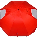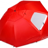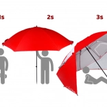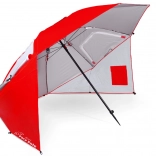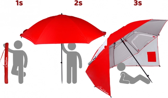 Červený plážový slunečník s ochranou UPF 50+ poskytne spolehlivý stín a pohodlí na pláži i na zahradě. Díky robustní konstrukci, větracímu otvoru, dvěma oknům s moskytiérou a rychlému sestavení během pár sekund zvládne horko, vítr i lehký déšť. Součástí je přenosný obal, kolíky a šňůry pro stabilní ukotvení.