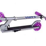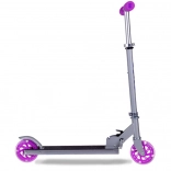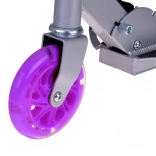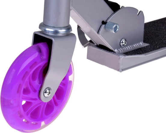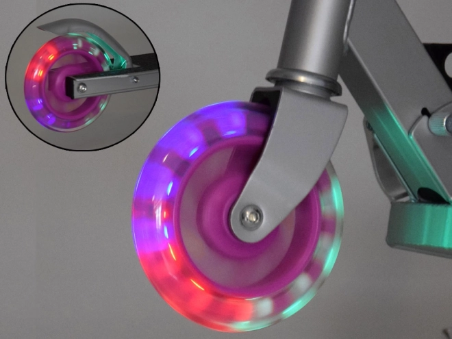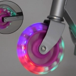 Tato dětská skládací koloběžka kombinuje lehkost, odolnost a bezpečí. Kola se při jízdě automaticky rozsvítí díky magnetické energii, takže nejsou potřeba baterie. Kovová konstrukce z hliníku a oceli zajišťuje dlouhou životnost a nízkou hmotnost pro snadnou manipulaci.