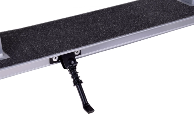 Výšku řídítek lze pohodlně nastavit ve třech krocích, pěnové gripy jsou příjemné do ruky a protiskluzová nášlapná plocha drží nohu pevně i při delších jízdách. Nožní brzda na zadním kole dovolí rychle a plynule zastavit, sklopný stojánek usnadní odložení kdekoliv.
