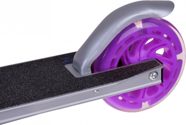 Lehká a odolná skládací koloběžka pro děti s LED svítícími koly, nastavitelnou výškou řídítek a protiskluzovou deskou. Snadno se skládá, pohodlně se přenáší a díky nožnímu brzdovému blatníku je bezpečná i při rychlejší jízdě. Ideální na procházky do parku, po cyklostezkách i na dovolenou.