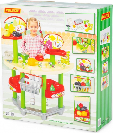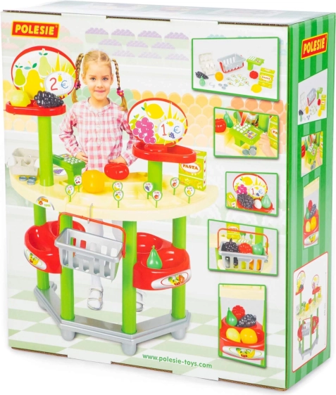 Barevný a funkční dětský supermarket od značky Polesie nadchne malé obchodníky. Nabízí pult s kasou, přihrádky na zboží a nákupní košík pro autentickou hru na obchod. Podporuje rozvoj komunikačních dovedností i základních matematických schopností při počítání cen a vracení peněz. Vyroben z kvalitního, netoxického plastu, bezpečný pro děti od 3 let.