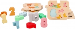 Hračka je inspirována principy Montessori – děti se učí vlastním tempem, smyslově a praktickými činnostmi. Puzzle rozvíjejí koordinaci oko–ruka, soustředění i vizuální vnímání.