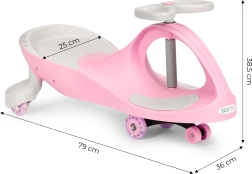 Speciální mechanismus umožňuje rozjezd střídavým kmitáním volantem doleva a doprava. Děti přirozeně trénují rovnováhu a koordinaci, zatímco si užívají plynulou jízdu doma i venku.