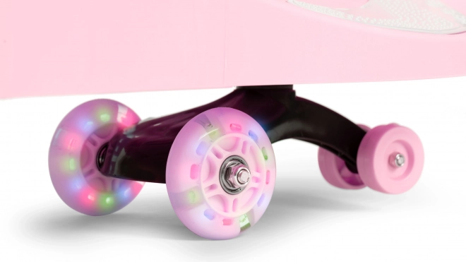 Gumová kola zajišťují tichý a plynulý chod a zároveň nepoškrábou podlahu, takže je odrážedlo ideální do bytu i na zahradu. Integrované LED diody v kolech se rozsvítí při jízdě a zvyšují viditelnost za šera, což přináší více zábavy i bezpečí.