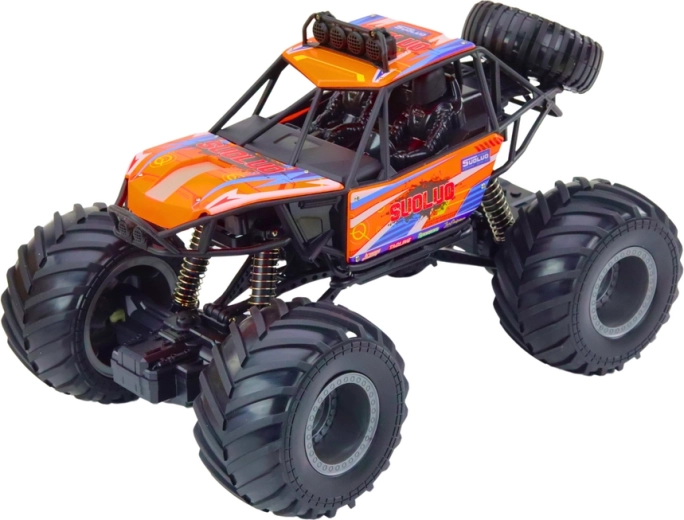 Díky velkým černým gumovým kolům a pokročilým amortizérům je auto ideální pro různé terény.
