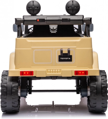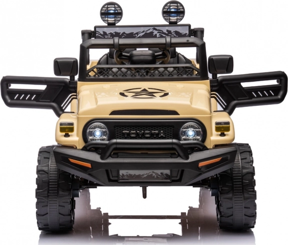 Objevte robustní design a skutečné detaily licencovaného vozu TOYOTA FJ Cruiser v dětském provedení. Dva zadní motory 12 V 35 W doplněné o přední pomocné motory zajišťují plynulou jízdu i na nerovném povrchu. Díky plynulému startu se děti neleknou rozjezdu a elektrická brzda zastaví vozidlo hned po uvolnění pedálu.