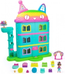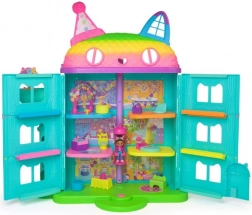 Okouzlující párty kočičí domek GABBY'S DOLLHOUSE (cca 60 cm) doslova překypuje barvami, nápady a interaktivní zábavou. Děti mohou pomocí kočičího výtahu prozkoumat šest tematických místností a otočením střechy odhalit tajné podkroví. Po stisku tlačítka se ozve až 10 oblíbených zvuků a frází ze seriálu, které umocní atmosféru hry.