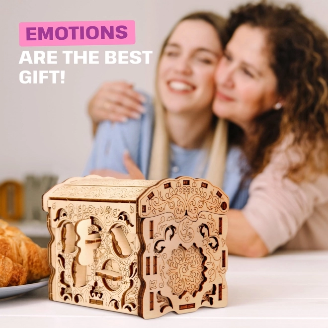 Skoncujte s nudným balicím papírem a darujte emoce – Tajemná Pokladnice poskytuje dokonalý zážitek díky propracovanému mechanismu. Najděte tajemství ukryté v této jedinečné skrýši a sdílejte zábavu při soutěžení s přáteli o to, kdo odhalí tajemství jako první. Dokážete svou vynalézavost a vyřešíte všechny hlavolamy? Vysoce kvalitní box s precizním laserovým řezáním a exkluzivním designem se stane ozdobou každého interiéru, přičemž je vyroben ze 100% přírodních materiálů šetrně k životnímu prostředí.