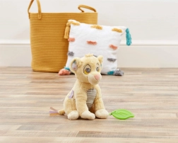Roztomilé lvíče SIMBA z pohádky DISNEY Lví král je hebká plyšová aktivní hračka s listovým kousátkem, texturovaným bříškem a smyslovými stuhami. Podporuje rozvoj smyslů a jemné motoriky, je ideální od narození a skvělé na mazlení i první hraní.