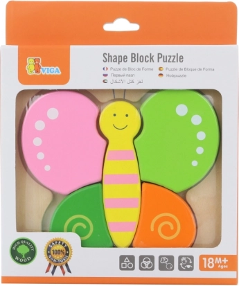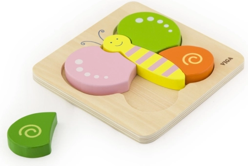 Představujeme Vám dřevěné puzzle ve tvaru motýlka od značky Viga. Toto puzzle je ideální jak pro domácí používání, tak i do mateřských škol.