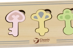 Manipulace s klíči a přesné zasazení do výřezů rozvíjí jemnou motoriku a koordinaci ruka–oko.