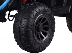 Velká dětská elektrická čtyřkolka 4x4 s plynem v rukojeti, 4 motory 12 V a baterií 12 V 12 Ah nabízí plynulou jízdu díky měkkým kolům EVA a zadním tlumičům. O skutečný zážitek se postarají světelné a zvukové efekty, komfortní sedlo s opěrkou a panel s MP3/USB. Součástí je také 2,4GHz dálkový ovladač pro rodičovskou kontrolu.