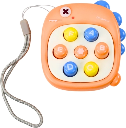 Kapetní hračka Whack a Mole zaujme svým veselým designem oranžového dinosaura a snadným ovládáním. Je určena těm nejmladším, kteří si hrou zlepšují svoji pozornost, reflexy a koordinaci pohybů. Hlavním úkolem je co nejrychleji mačkat tlačítka, která se náhodně objevují na povrchu hračky.