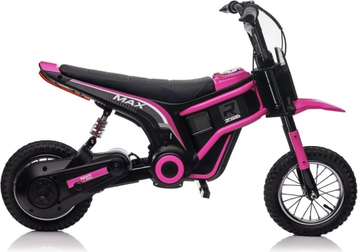 Užijte si dostatek zábavy s touto dětskou elektrickou motorkou v odvážném růžovém a černém designu. Tato motorka přináší nezapomenutelný zážitek z jízdy pro malé dobrodruhy.