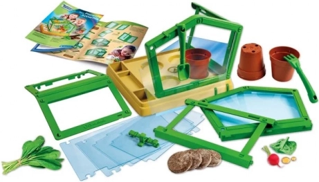Tato naučná sada dětem jednoduše a zábavně přibližuje základy botaniky. Průhledný skleník s nastavitelnou střechou pomáhá regulovat vlhkost a teplotu, takže je skvělý pro první pěstitelské experimenty doma.