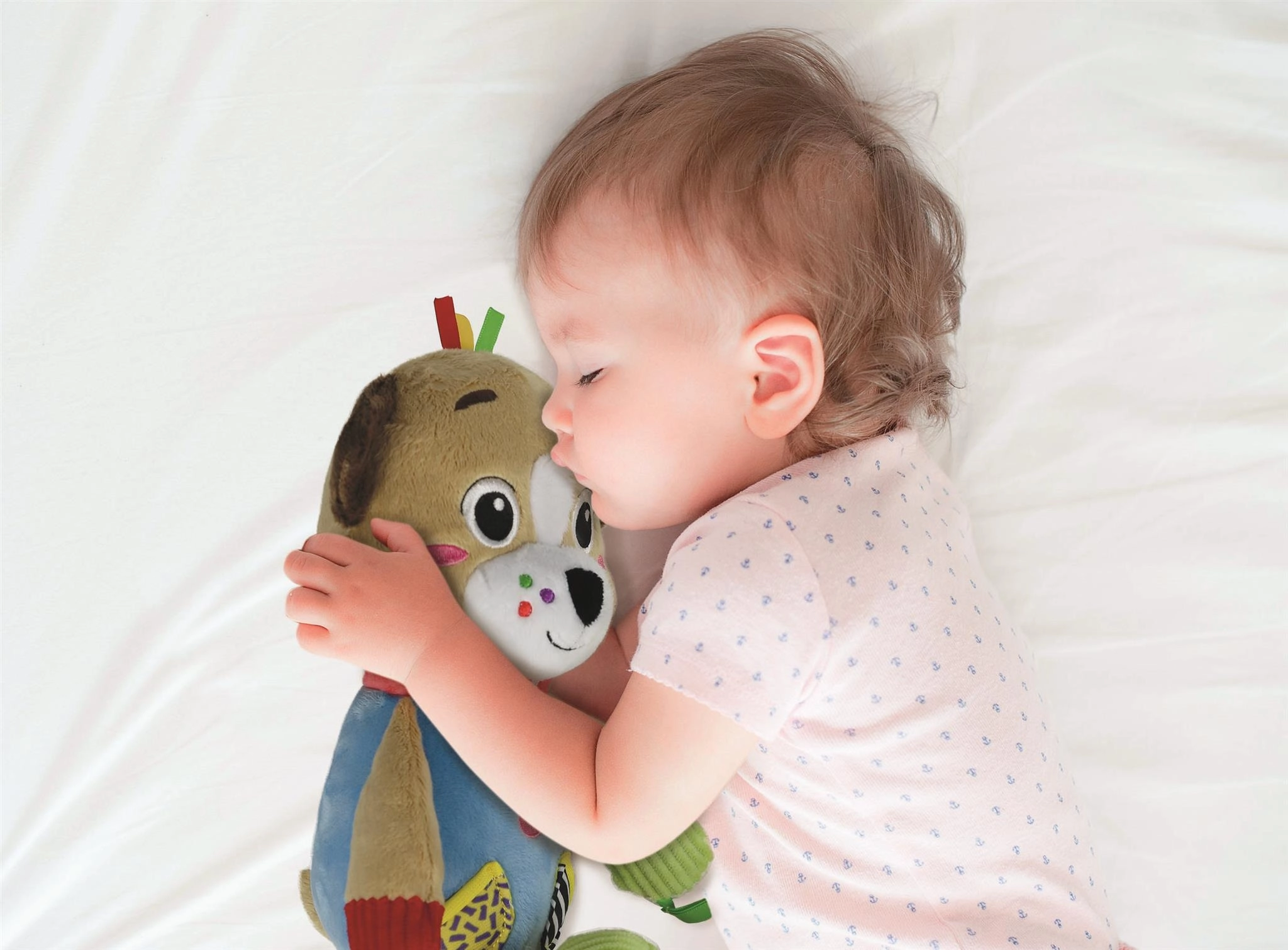 Měkký plyšový pejsek vytvořený pro nejmenší děti k podpoře zábavy ve světě plném jemnosti.