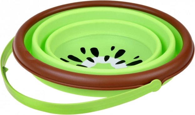Tento skládací silikonový kyblíček s ovocným motivem kiwi je skvělým parťákem pro malé objevitele. Rozložíte ho během chvilky a po hře ho složíte do plochého tvaru, takže zabere minimum místa v tašce i kufru. Měkký, ale odolný materiál je příjemný na dotek a šetrný k dětským ručkám.