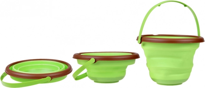 Kyblíček složíte do plochého tvaru o výšce přibližně 5 cm, takže se snadno vejde do batohu či kočárku. Ideální řešení na výlety, dovolenou i malé domácnosti.