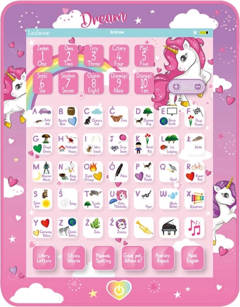 Tablet Unicorn Lexibook je navržen tak, aby vaše děti mohly zábavnou formou rozvíjet své jazykové schopnosti. Učení o písmenkách, slovech a číslech je podáno hravou formou s okamžitou zpětnou vazbou.