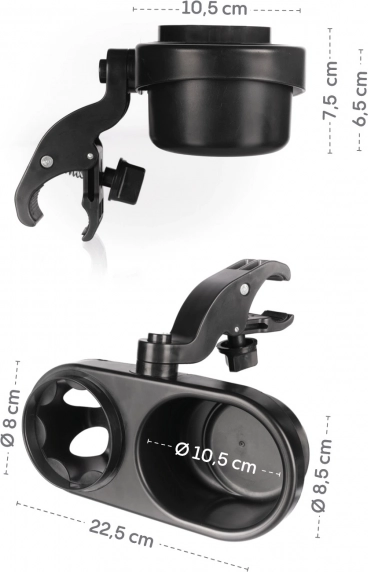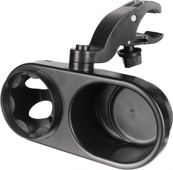Už žádné lovení lahviček a sušenek v košíku kočárku. Tento univerzální držák 2v1 nabízí dvě přihrádky – pro lahev/hrnek a pro drobné občerstvení či klíče. Odolné plastové provedení a pevná svorka zajišťují jisté uchycení bez viklání i na nerovném terénu.