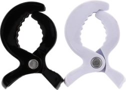 Praktické plastové klipy na kočárek v černo‑bílé barvě pro snadné a bezpečné přichycení doplňků. Ideální na pleny, osušk y, sítě proti hmyzu či další textilie. Balení obsahuje 2 kusy s pevným úchopem a odolným kovovým kloubem pro každodenní použití.