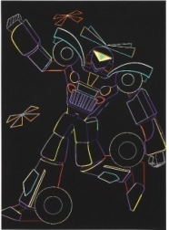 Škrabací obrázky přinášejí zábavu a rozvoj kreativity pro děti i dospělé. Stačí jen použít přiložené pero a odhalit skrývající se barvy pod černou vrstvou. Balení obsahuje čtyři listy o rozměru A4 s motivy oblíbených Transformers.