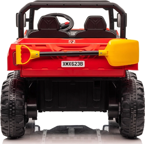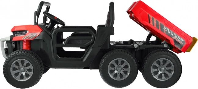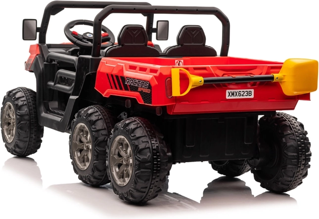 Robustní dětské elektrické auto s pohonem 4x6, dvěma sedadly a elektrickou vyklápěcí korbou pro malé pomocníky. Nabízí 4 silné motory 24V/75W, měkká EVA kola, plynulý rozjezd, amortizaci, LED osvětlení i rodičovský dálkový ovladač 2,4 GHz pro bezpečnou jízdu na zahradě i dvoře.