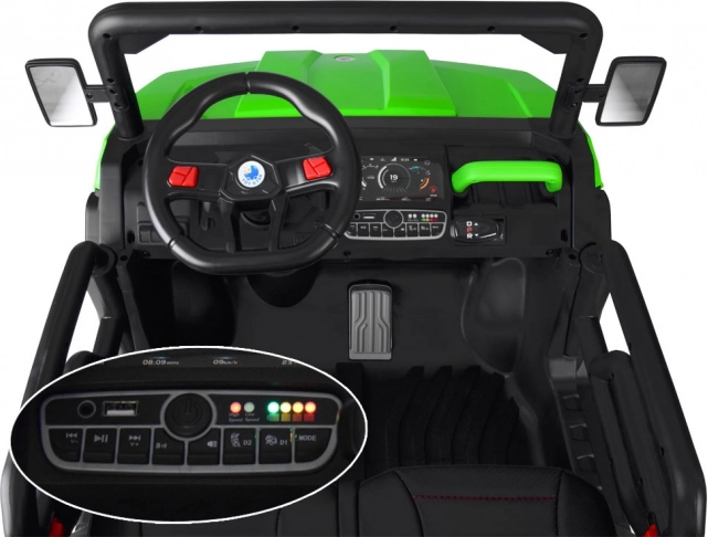 - USB vstup, MP3 vstup, ovládání hlasitosti, zvuky motoru, melodie