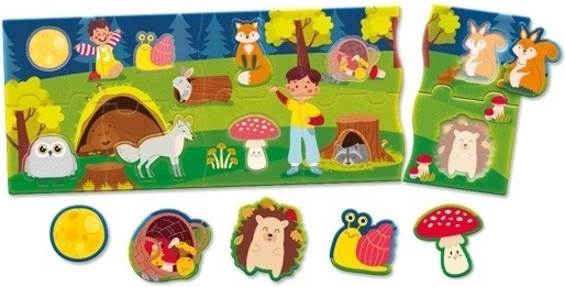 - Puzzle obsahuje pestré obrázky lesa, které inspirují a stimulují dětskou představivost.