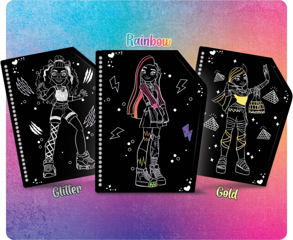 Vstupte do kouzelného světa Monster High a tvořte pomocí zdrapávacího skicáře, kde po seškrábnutí černé vrstvy odhalíte zlaté, třpytivé a duhové efekty. Skicář nabízí 44 stran plných kreativní zábavy.