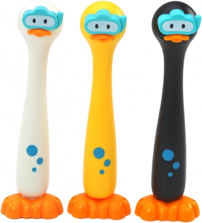 Zábavná sada tří potápěcích kachniček do vody pro děti od 6 let v barvách bílá, černá a žlutá. Obohacené o závaží pro snadné potápění, podporují obratnost, koordinaci a jistotu ve vodě. Ideální do vany i bazénu, s certifikací CE a shodou s EN71.
