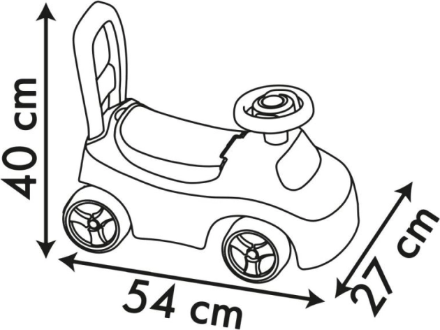 Praktická úložná schránka pod výklopným sedadlem pojme drobné hračky či poklady malého cestovatele. Volant s klaksonem podněcuje hru, tichý chod kol je vhodný i do interiéru. Lehká plastová konstrukce se snadno přenáší a odolá každodennímu používání.