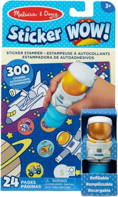 Objevujte planety, rakety a galaxie s jedinečným razítkem ve tvaru astronauta. Každé přitlačení odhalí novou samolepku a díky chytrému uložení uvnitř razítka máte pořádek bez ztracených samolepek. Sada podporuje jemnou motoriku, fantazii i učení o vesmíru hravou formou.