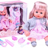 Po stisknutí bříška nebo ručiček panenka vydává různé zvuky: smích, pláč, gagání, „máma“, „táta“, pití z lahvičky i beknutí. Díky tomu děti zažijí autentičtější péči o miminko.
