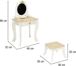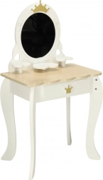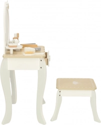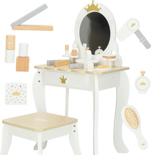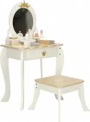 Toaletka i doplňky jsou vyrobené z hladce broušeného dřeva a lakované netoxickými barvami – ideální pro každodenní hraní bez starostí.