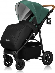 Sportovní kočárek LIONelo Natt je navržen pro bezpečné a pohodlné cestování od města až po lehký terén. Robustní nafukovací kola s hlubokým vzorkem zajišťují stabilitu, zatímco přední otočná kola s aretací umožňují snadné manévrování. Díky opěradlu polohovatelnému až do lehu a nastavitelné opěrce nohou si dítě užije klidný spánek na ploše dlouhé až 92 cm.