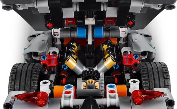 Model je vybaven pohyblivým motorem V8 s diferenciálem, řízení ovládané odnímatelným kolečkem vpředu usnadňuje manévrování a špičkovým prvkem jsou dveře Synchro-Helix, které se otáčejí a vyklápějí o 90°. Součástí je také aplikace LEGO Builder s 3D náhledem, otáčením modelu a sledováním postupu stavby.