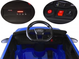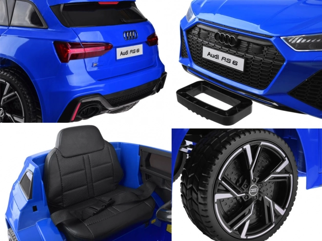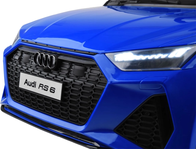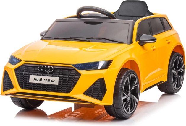 Licencované vozítko Audi RS 6 startuje červeným tlačítkem s efektem zvuku motoru a má samostatné tlačítko pro přední a zadní osvětlení. Uvnitř najdete komfortní sedadlo z eko kůže s bezpečnostním pásem, multifunkční volant s klaksonem a přepínáním skladeb, stejně jako panel s MP3/USB a regulací hlasitosti.