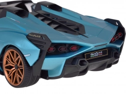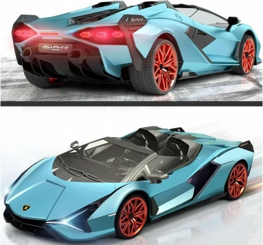Užijte si jízdu s licencovaným vozem LAMBORGHINI Sián s aerodynamickými liniemi, nízkým podvozkem a detailně zpracovaným interiérem. Díky gumovým pneumatikám má auto výbornou přilnavost a stabilitu v zatáčkách. Osvětlení umocňuje realističnost: vpředu bílé při jízdě vpřed, vzadu červené při couvání.