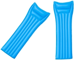 Tato plážová matrace je ideální pro lenošení u bazénu i na jezeře. Díky integrovanému polštáři nabízí příjemnou oporu hlavy, zatímco robustní PVC materiál zajišťuje dlouhou životnost a stabilitu na vodě. Klasický tvar a univerzální modrá barva se hodí ke každému letnímu vybavení.