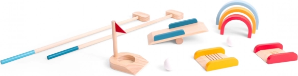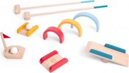 Zábavná rodinná hra pro 1–4 hráče: dřevěný minigolfový set s překážkami, který rozvíjí koordinaci oko–ruka, soustředění a vytrvalost. Ideální na zahradu i do parku, obsahuje 2 golfové hole, 2 míčky a 7 barevných překážek pro nekonečnou porci pohybu a zábavy bez obrazovek.