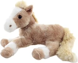 Přirozené hnědo-bílé zbarvení, nadýchaná hříva a ocas podporují fantazii a rozvoj jemné motoriky.