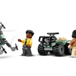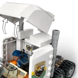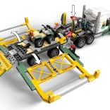 - Nákladní vůz s kabinou pro 3 minifigurky, přívěs s klecí a rampou, quad, dron