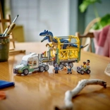 Postavte si scénu jako z JURASSIC WORLD: mocný allosaurus s pohyblivými končetinami, hlavou a otevíratelnou čelistí je převážen v detailní kleci na přívěsu. Kabina náklaďáku má místo pro tři minifigurky, nechybí nakládací rampa, otevírací střecha a kapota ani páka pro bezpečné zavření klece. Quad a dron rozšíří možnosti hry a podpoří kreativní vyprávění.