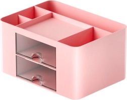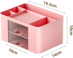 Organizér je vybaven 5 přihrádkami různých velikostí a 2 šuplíky, což umožňuje efektivní uložení různorodých předmětů. Každá přihrádka je navržena ke skladování předmětů různých rozměrů, což umožňuje snadno organizovat prostor a rychle najít potřebné věci, což výrazně zvyšuje efektivitu práce.