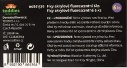 Sada akrylových fixů s intenzivními fluorescentními barvami pro univerzální kreativní použití. Hodí se na papír, dřevo, kameny, sklo, plast i keramiku. V balení je 6 výrazných odstínů, které skvěle kryjí a rychle schnou. Ideální pro zdobení, popisování a tvoření bez rozmazávání. Před použitím protřepejte. Není hračka.