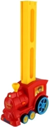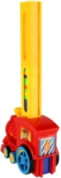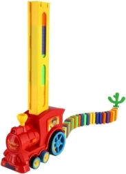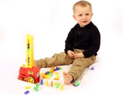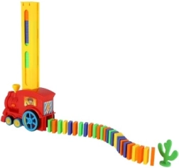 Vláček při jízdě sám staví barevné kostky do dlouhé řady. Děti si užijí hladké a rychlé přípravy na velké dominové kaskády.