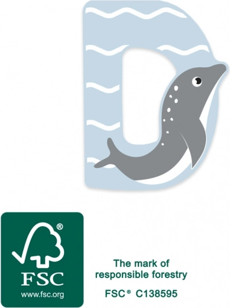Dřevěné písmeno D z nové zvířecí ABC řady je perfektní volbou pro zábavné učení i stylovou dekoraci. Díky pevnému zpracování a hladkým, zaobleným hranám se dětem příjemně drží a bezpečně používá. Pastelové barvy s motivem delfína dodají prostoru hravý nádech.